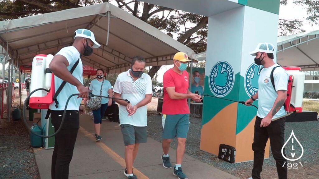 Con el retorno de los ciudadanos a las actividades deportivas, la Gobernación del Valle del Cauca a través de la Industria de Licores del Valle, inició el pasado domingo 20 de septiembre, un piloto de bioseguridad para la población en la gran cicloruta entre Santiago de Cali y el Municipio de Palmira. A través de una gran estación de cuidado y desinfección al inicio del recorrido, por la salida norte de la capital del Valle hacia Palmira, los ciudadanos encontraron a su disposición todos los recursos para mantener su practica deportiva con seguridad como aspersores de alcohol San Martín, gel desinfectante, toma de temperatura y lavabos con servicio de agua potable y jabón líquido. “Desde la ILV estamos brindando todas las medidas de bioseguridad y los invitamos a que nos acompañen en estas jornadas de salud y recreación con toda la familia ahora que podemos salir y compartir con nuestros seres queridos a hacer esta actividad deportiva”, indicó José Moreno, gerente de la Industria de Licores del Valle. Ver también: Con el apoyo de la ILV se reactivan los restaurantes de Cali Para los deportistas y curiosos que se encontraron con la estación de desinfección, es una gran iniciativa que les motiva a volver a la normalidad de sus actividades de recreación con seguridad. “Excelente este servicio para los ciudadanos, muchas veces uno por estar al aire libre se relaja un poco con el tema de los cuidados. Pero qué bueno encontrarse con estas cosas” indicó Soraida Chacón, madre de familia en práctica deportiva en la zona. Es así como desde la ILV, trabajamos para proporcionar en esta oportunidad a todos los caleños y habitantes del municipio de Palmira las herramientas para el autocuidado con todo el esfuerzo del Gobierno Departamental. Ver también: Estos son los primeros puntos de venta de Alcohol San Martín en Cali