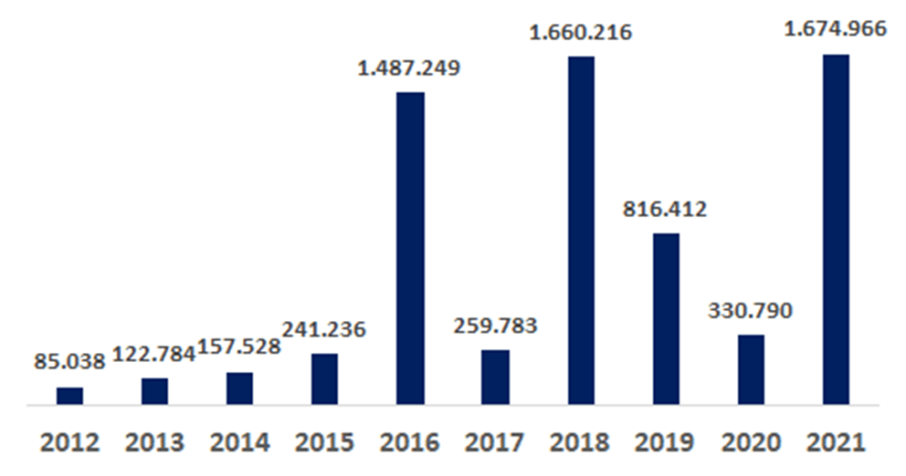 Este incremento sustancial es 406% más que el obtenido en el 2020, que a su vez es el mayor registrado en los últimos 10 años por la ILV.